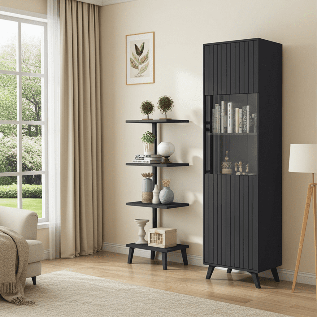 Elevate your home decor with the Atlantis Display Unit, a sleek and sophisticated cabinet designed to showcase your prized possessions in style. This exquisite piece is meticulously crafted in a stunning Matt Black finish, featuring striking vertical grooved lines that add a touch of modern elegance to any space.