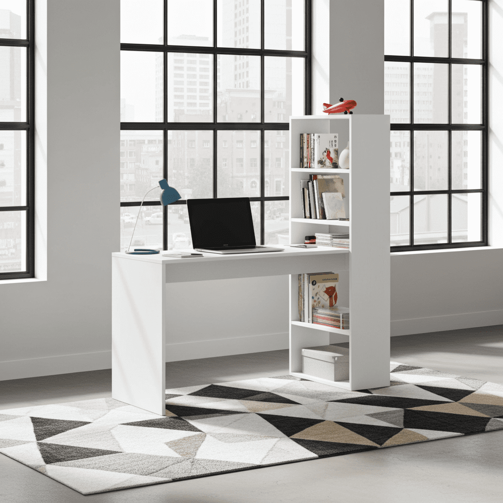 - Bookcase and desk compact design