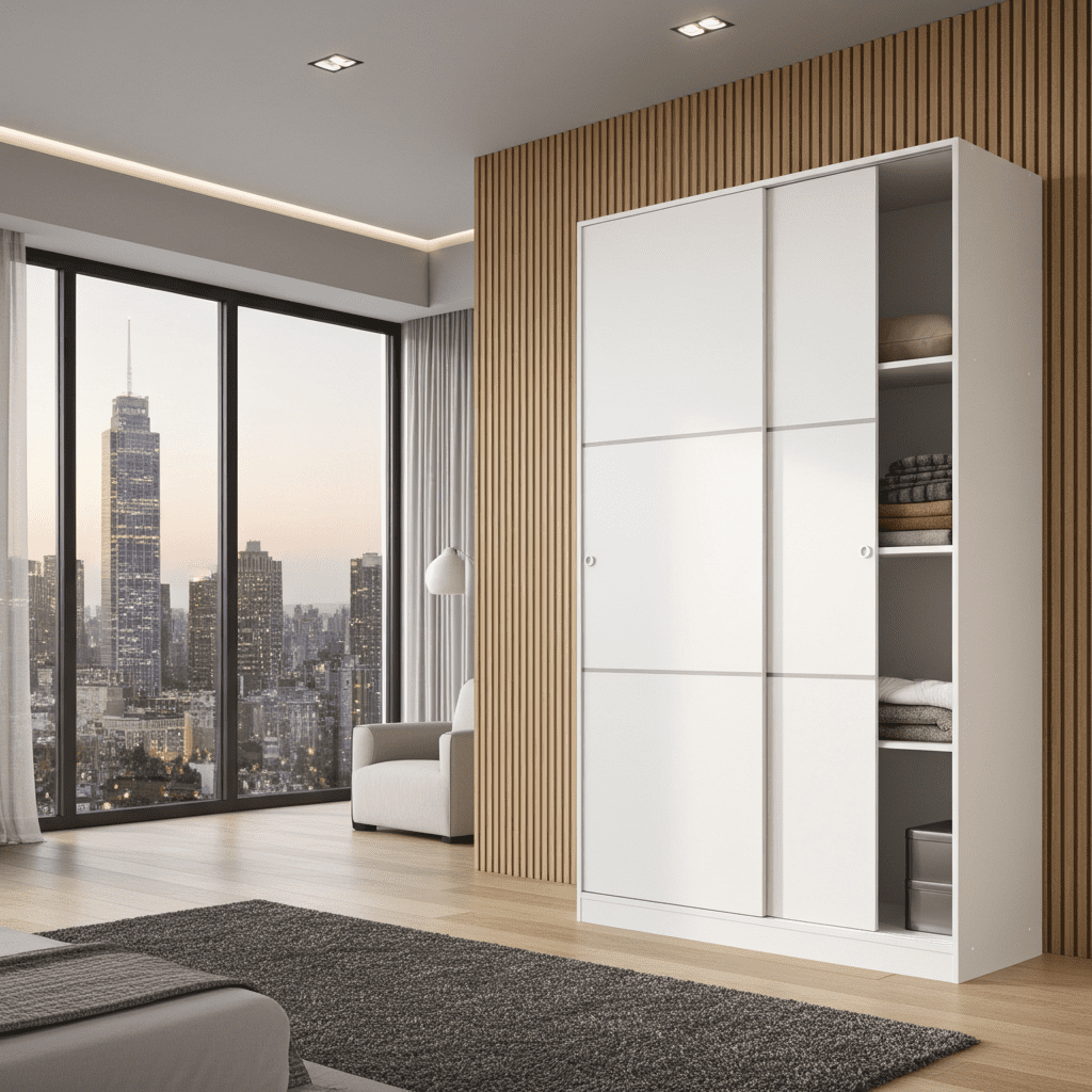 The Madrid Sliding Door Wardrobe in Gloss White (120cm) offers both style and functionality for your bedroom. With its sleek design and glossy finish, it adds a modern touch to any space. Inside, you'll find five internal storage compartments and a hanging rail, providing ample room for organising your clothes and accessories. The sliding doors make it space-efficient, perfect for smaller rooms.