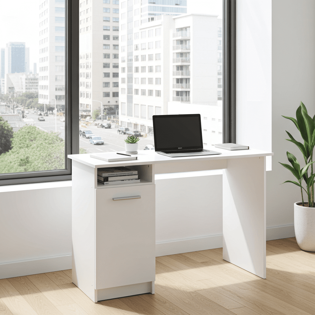 Introducing the Reygo Matt White Computer Desk, a blend of minimalism and functionality. This desk features a stylish matt white finish and includes one door for concealed storage. Perfect for creating a streamlined workspace while enhancing the aesthetic appeal of your room.